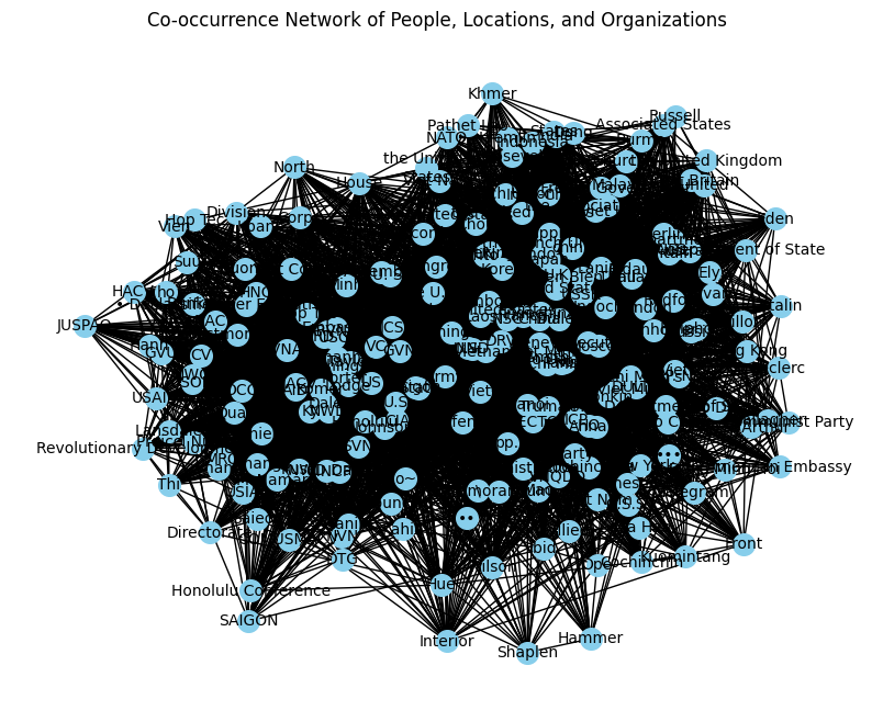 The spaCy Named Entity Recognition comes pre-built for different languages and is really good. However, many of the people, organizations, and locations I’m looking for are Vietnamese. The grammar won’t be a problem, but I want to isolate some of these entities and make sure they get recognized. Between the maps, the tables of locations and figures, and my own parsing, I was able to build a fairly comprehensive list of individuals referenced on the early pages, which I then added to the base model in these categories and had it re-train.